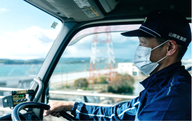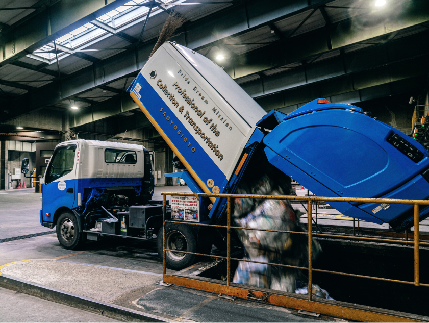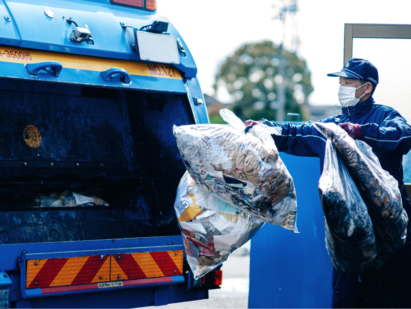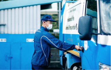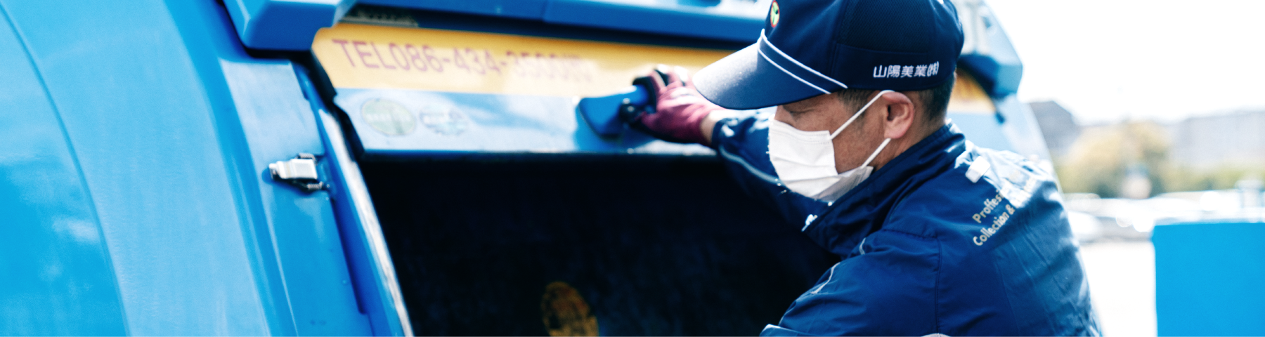 私たちの日常生活とともに発生するごみを収集・運搬する業務です。倉敷市の委託事業者として、市内の一部地域のごみステーションから処理施設までの収集運搬を行っています。