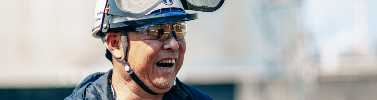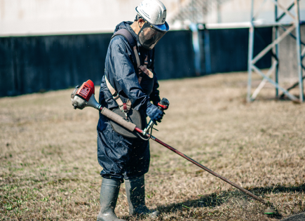 エネオス緑化部のリーダーとして、水島コンビナートの大手化学メーカーや鉄鋼メーカーの構内で緑地管理業務を担当しています。朝はミーティングで作業場所を確認し、チームで草刈りや薬剤散布などの作業を行います。昼食を挟んで午後も作業を続け、1日の終わりには翌日の準備をして帰ります。 工場内の緑地管理は一般的な庭園とは違って、特殊な技術が必要なんですよ。工場内は配管や設備が多いので、通常の草刈り機ではなく樹脂製の刃を使うなど、設備を傷つけない工夫が必要なんです。また、季節や場所によって草丈も変わるので、それに応じた刈り方や刈りにくい草への対処法も大切です。上から順番にバーンと叩いて刈っていくような方法もあるんですよ。