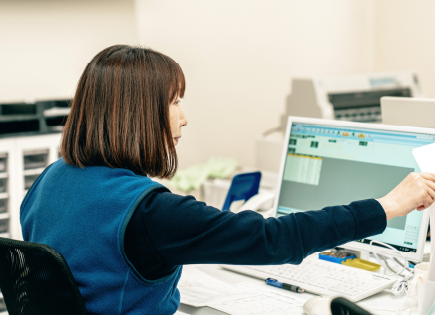 総務部では主に売上業務、マニフェスト(産業廃棄物管理票)の処理、入金作業などを担当しています。ドライバーさんが出したものをもとに売上を計上する作業が日中の主な業務です。マニフェストの処分所ごとの仕分けや整理も行います。月末には月次業務、夕方には入金作業もあります。入社当初は知識がなくても、徐々に学んでいけるのが魅力だと思います。昨年、産業廃棄物適正管理能力検定を受けさせてもらい、勉強することができました。知識を持つことで、今まで目に留まらなかったことにも気づけるようになりましたね。